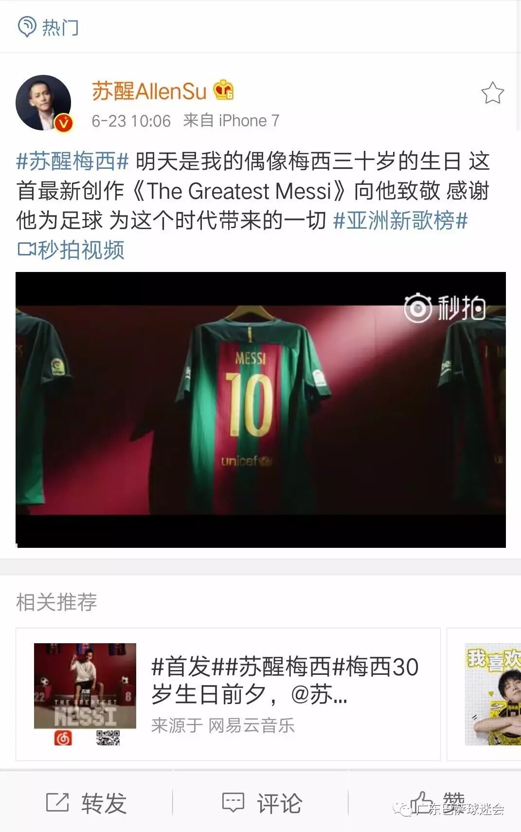 今天是2017年6月24号,梅西就要度过自己的三十岁生日了,作为娱乐圈第一梅吹,专业球迷兼职歌手的苏醒将于梅西生日的前一天也就是23号发表了这首向他致敬的原创作品《The Greatest Messi》!