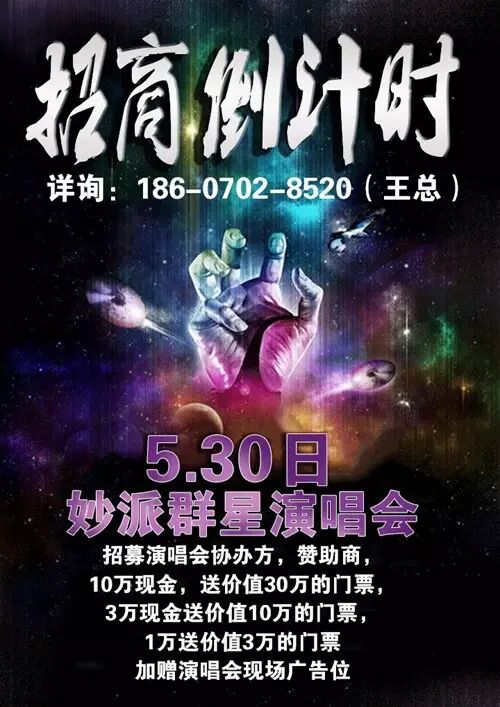 协办方10万现金,送价值30万门票,3万现金送价值10万的门票,1万现金送价值三万的门票!还免费赠送演唱会现场广告位!八里湖体育中心,黄金席位等你来拿!