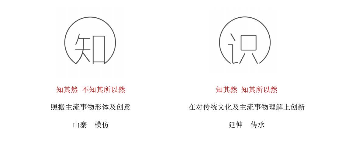 利征先生提出,在原创的环节里,分“知”和“识”。第一阶段为“知”,借鉴和模仿的阶段,到了第二阶段已经是升级和延伸,这就是“识”。