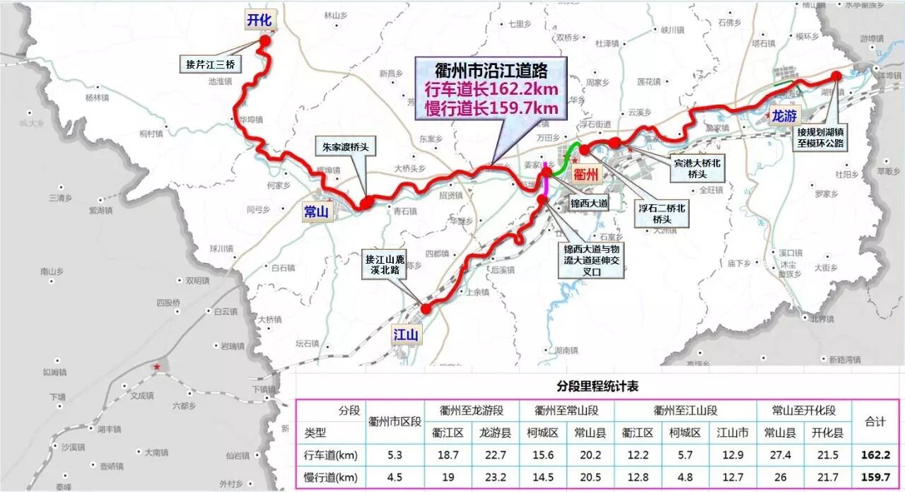 衢州至龙游段起点位于衢江区宾港大桥,沿衢江北岸至龙游县。