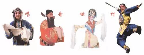 集唱(歌唱)、念(念白)、做(表演)、打(武打)、舞(舞蹈)为一体、通过程式的表演手段叙演故事和刻画人物,以表达剧中人物的『喜 怒 哀 乐 惊 恐 悲』的思想感情。