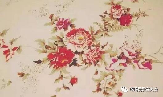 淡黄色印有牡丹花的“国民床单”