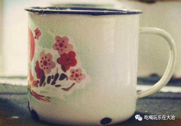 露出黑色底色的搪瓷茶缸子