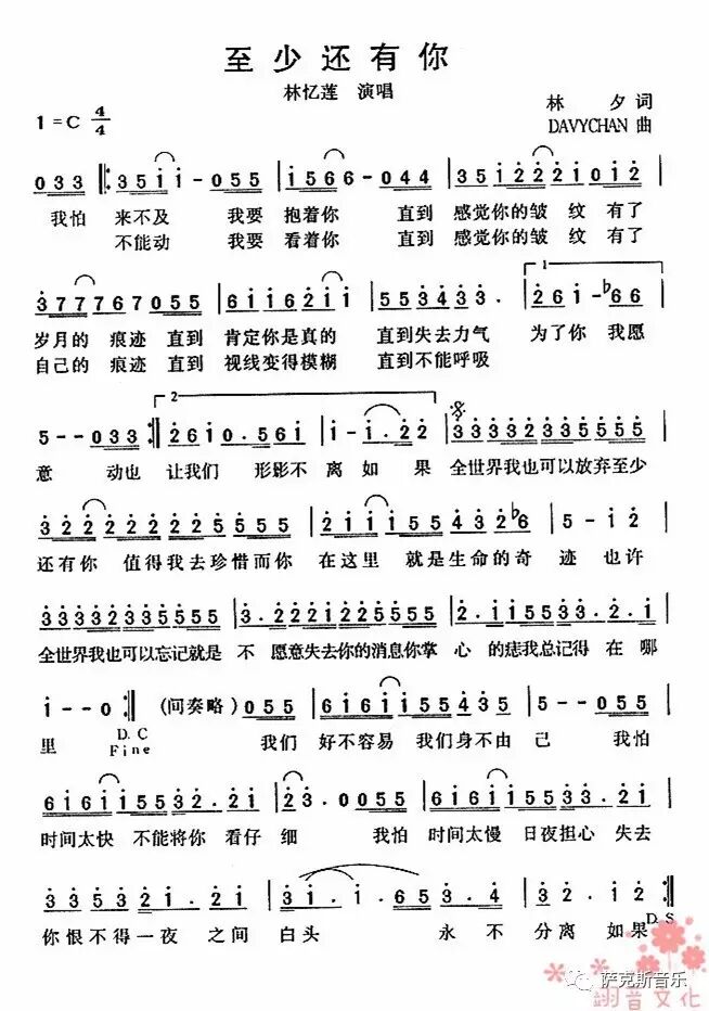 《至少还有你》是香港女歌手林忆莲于2000年1月发行的专辑《林忆莲's》中的一首主打歌曲。是步入21世纪以来最为流行的情歌之一,也是无数女孩子K歌必点的歌曲。