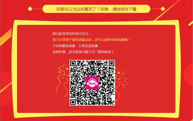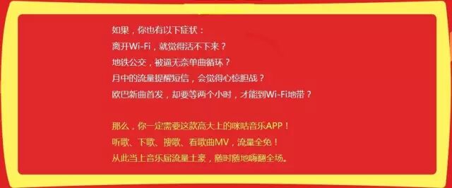 即日起至8月31日,凡大陆的中国移动用户使用咪咕音乐APP浏览、搜索、试听、下载音乐产品(包括全曲、MV)所产生的2/3/4G移动数据流量均免费!还在等什么,快去下载吧!
