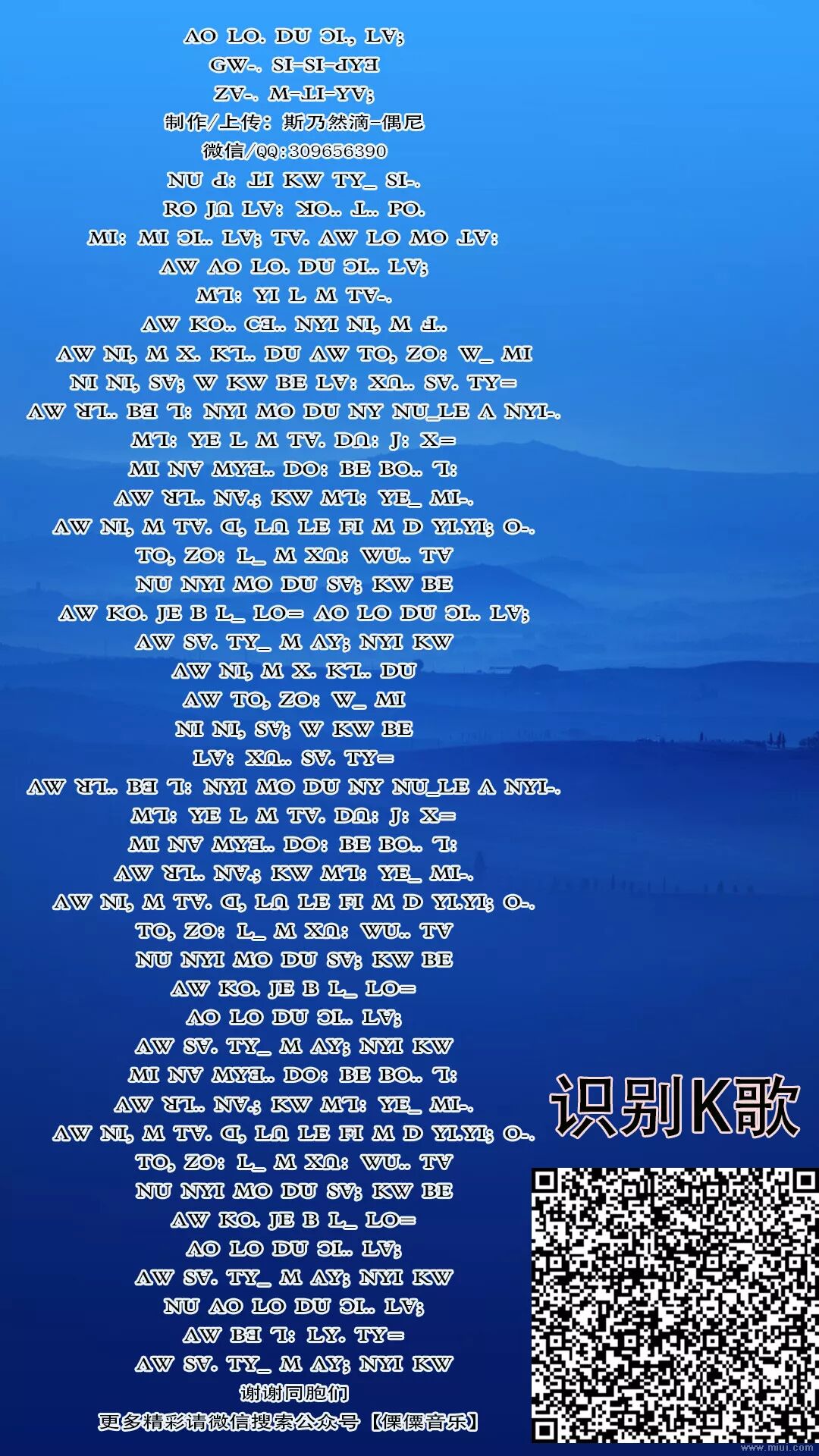 本期推荐一首经典老歌,还可以K歌哦!! K 歌方式识别以上二维码,进入前往全民K 歌即可,看不到歌词的请下载傈僳文字体下载地址:https://pan.baidu.com/s/1dFOxIXN?from=timeline