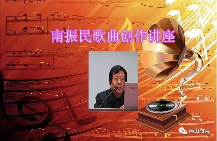 当天,宽敞的学术报告厅里座无虚席,鸦雀无声,当南老师用宽广浑厚的嗓音唱起自己创作的歌曲,醇厚优美的歌声在报告厅里回荡,听众席上响起了阵阵热烈的掌声。在将近3个小时的讲座中,他结合歌曲实例,分析当下流行歌曲的优劣,阐述音乐与歌词之间的关系,分享自己的创作体会,介绍作曲的方法。从歌词与曲调旋律的结合、较短的歌词如何运用旋律展开、较长的歌词如何运用旋律紧缩、学会运用歌词的重复、运用衬词、倒字的问题、善于处理音乐曲调与歌词之间的辩证关系等七个方面进行阐述和讲解,整个讲座浅显易懂,妙趣横生。