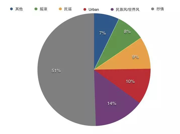 “歌手”的比赛几乎都是现场翻唱别人的作品,歌手以及编曲老师如何演绎出新意也是考验功力。我们列出了《歌手3》前十一场竞演中,77首竞演歌曲的风格(其中某些歌曲可能包含多种曲风),其中有49首歌是抒情曲风或混搭了抒情曲风,大概占51%,其他风格占比49%,比例相当。