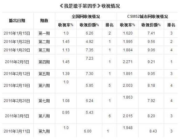 第一期竞演歌手和排名