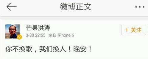 事情源于洪涛导演微博的一句话:你不换歌,我们换人。网友和各大媒体都纷纷把矛头指向了邓紫棋。