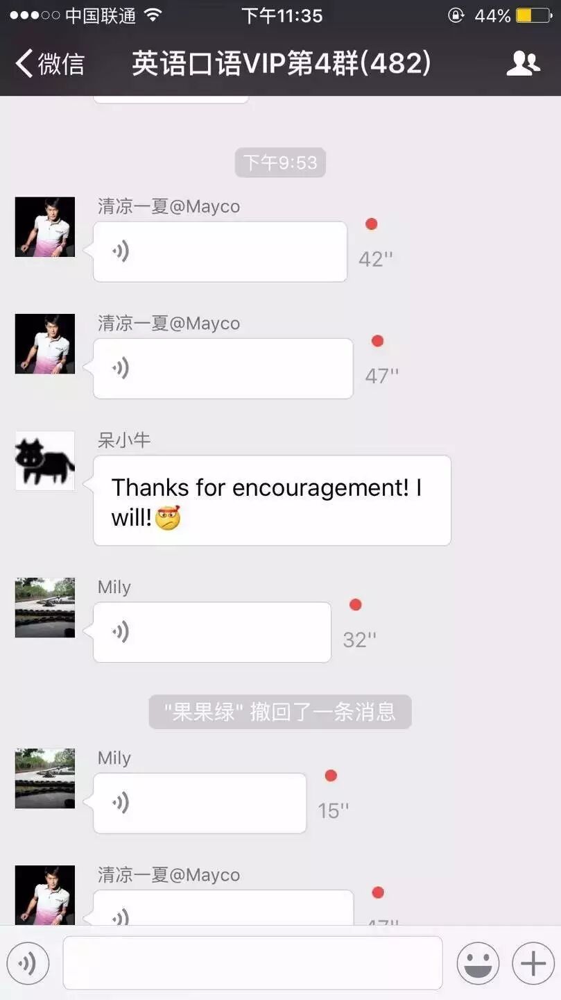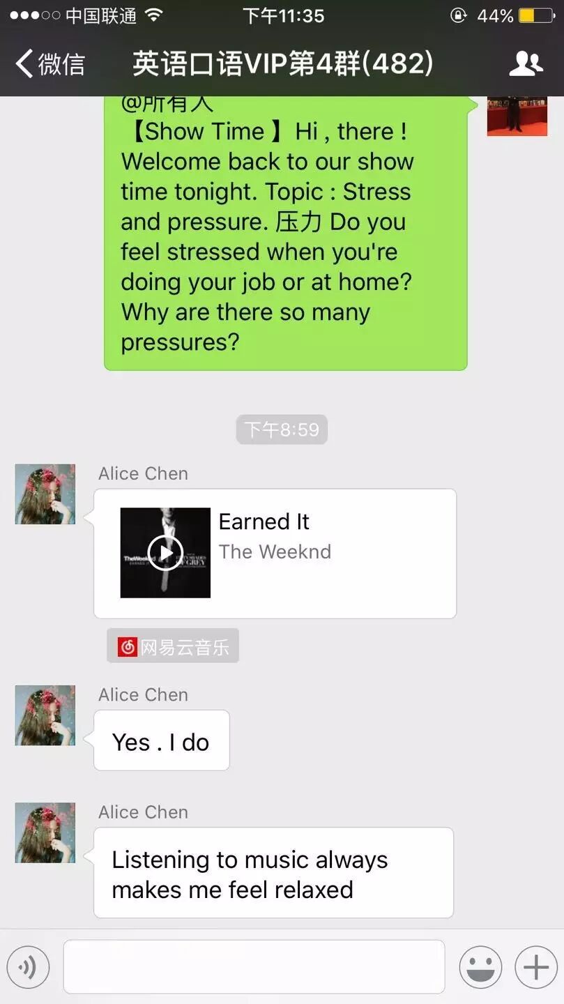 【还有我们赠送的永久有效英语微信口语群聊天记录】