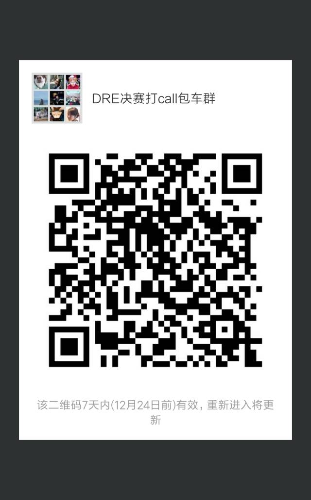 喜欢DRE乐队的大家,可以扫码进群,搭乘学校免费来回包车,前往决赛现场为DRE加油助威!
