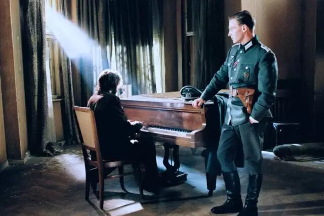 整部电影,导演都在控制情绪,就像波兰斯基自己说的那样——“你看不到导演的痕迹”,除了废墟中的钢琴演奏,借音乐把电影推向了高潮。就是,在这种对是非观念极其含蓄的表达之中,波兰斯基重现了真实的二战犹太史。