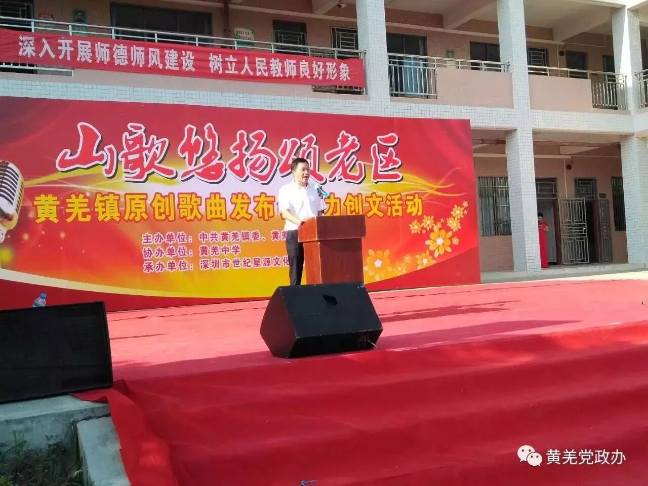镇党委书记许泽武在发布仪式上致辞,充分肯定黄羌老区璀璨的红色历史、深厚的文化底蕴、良好的自然生态,民风纯朴,崇文尚德,钟灵毓秀,人杰地灵;赞扬黄羌老区青年一代在传承、诠释客家文化内涵,推动黄羌文化建设上的积极作用;相信活动的成功举办,必将对宣传客家文化、推介黄羌山歌,促进创文活动,打造红色旅游特色小镇产生极其深远的影响;坚信在县委、县政府的正确领导和社会各界人士的关心、支持下,黄羌镇广大干部群众一定会凝心聚力全面推进文明创建活动,创造更加美好的明天!