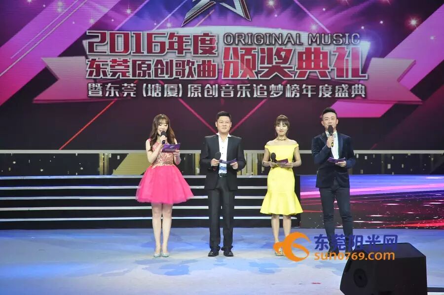 2016年度东莞原创歌曲颁奖典礼暨东莞(塘厦)原创音乐追梦榜年度盛典由东莞市文化广电新闻出版局、东莞市文学艺术界联合会、东莞广播电视台、塘厦镇人民政府联合主办。今年的原创音乐颁奖典礼是第四届了,和往年不同,今年大赛配合东莞文艺“飘香”行动和“繁星”行动的实施,首次联袂东莞(塘厦)原创音乐追梦榜,共同推进东莞本土原创乐坛的发展。
