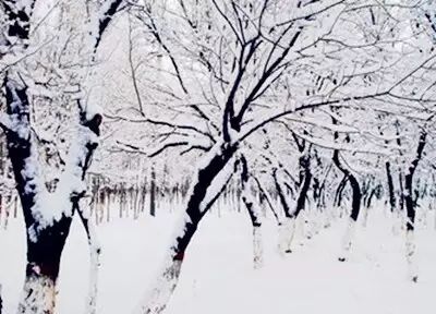 雪雕的玉树沾满棉花糖。