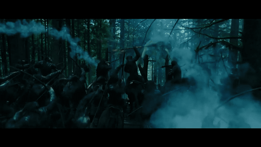 《黎明之战》所致力呈现的是面对种族问题“非我族类其心必异”的宿命思考,以猩寓人人性阴暗面的丑陋与救赎,这并不是一场令人热血沸腾的传统美式爆米花片,相反暗格调和人类濒临灭绝的末日将临为电影蒙上了一层令人抑郁的阴云,但在最后面对即将到来人猿无法挽回的决战,《黎明之战》又令人感受到了人性可贵的光辉与最真挚的情感流露。