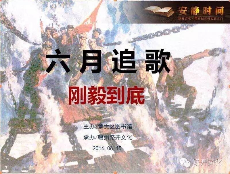 6月15日晚,由章贡区图书馆主办、赣州市路开文化创意有限公司承办的公益文化活动「安静时间」栏目,举办"六月追歌•刚毅到底"军人主题专场 ,、郭小川等磅礴宏篇,以及路开诗友会部分军人出身作家、诗人作品,气氛庄严、轻松。来自广州的几个文友,兴致勃勃参加诗会。