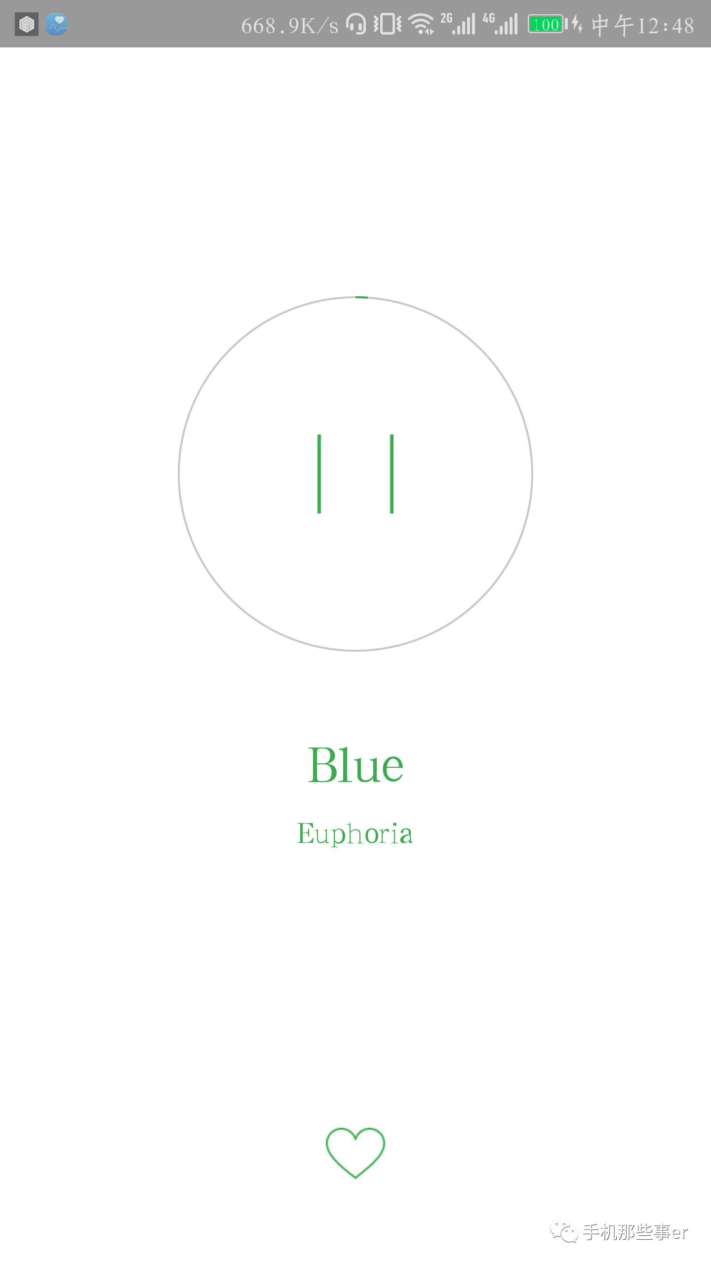 第二步:小编这里以开心为例点开进入,软件则会自动随机为你播放开心愉快的音乐,会出现上图所示界面同样灰常简洁。左右滑动亦可随机切换歌曲,很方便。如果你喜欢这首歌曲,则可以点击界面最下面的心形收藏保存。