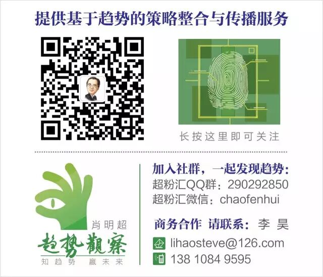《肖明超-趋势观察》是知萌咨询机构旗下的趋势媒体平台,每周分享最新的商业、营销和互联网趋势的独特观点和原创思想。目前已经入住今日头条、一点资讯、界面、搜狐新闻客户端、网易云阅读等平台。