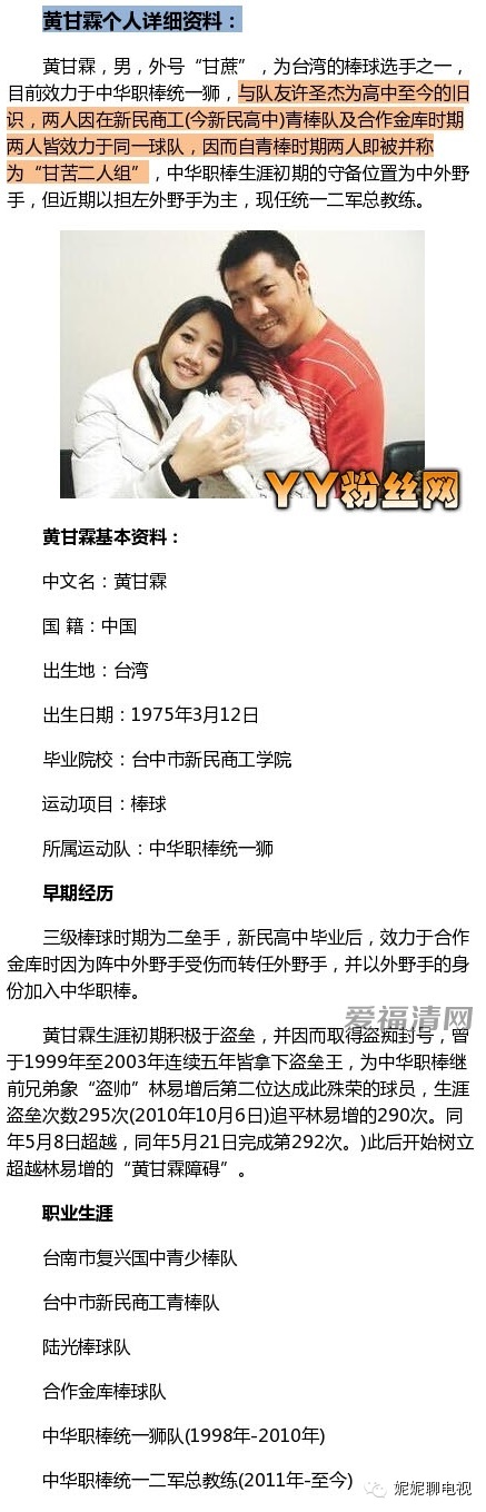 下面说说她老公:黄甘霖,台湾著名棒球手。