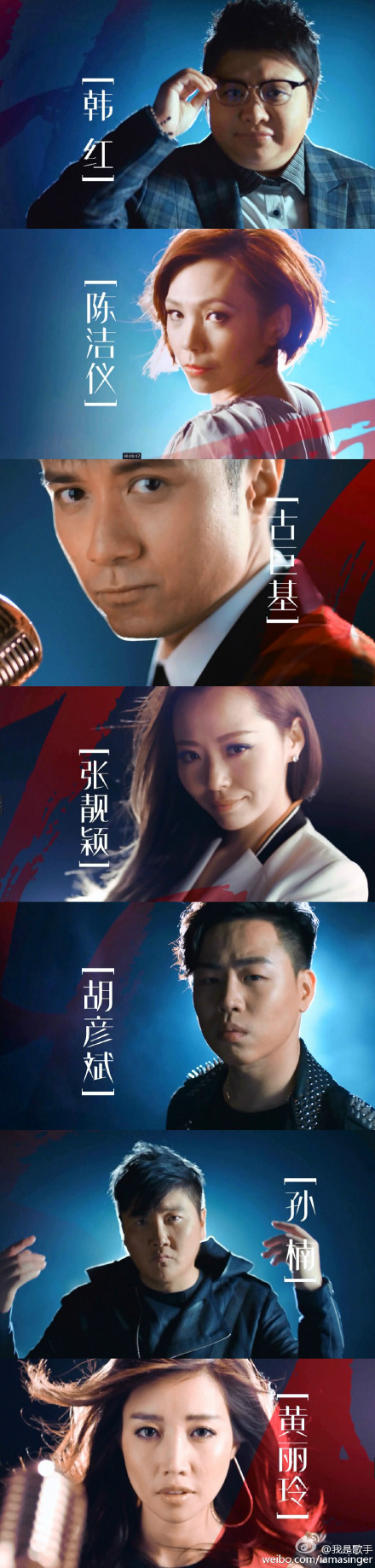 2015年1月2日晚22点,华语乐坛顶级歌手齐聚《我是歌手》:国字号女声韩红,天籁之声陈洁仪,暖声男音古巨基,王者唱将孙楠 ,靓音女神张靓颖 ,天生歌姬黄丽玲 ,音乐魔法师胡彦斌,谁是真正王牌?华丽宣传片震撼来袭!