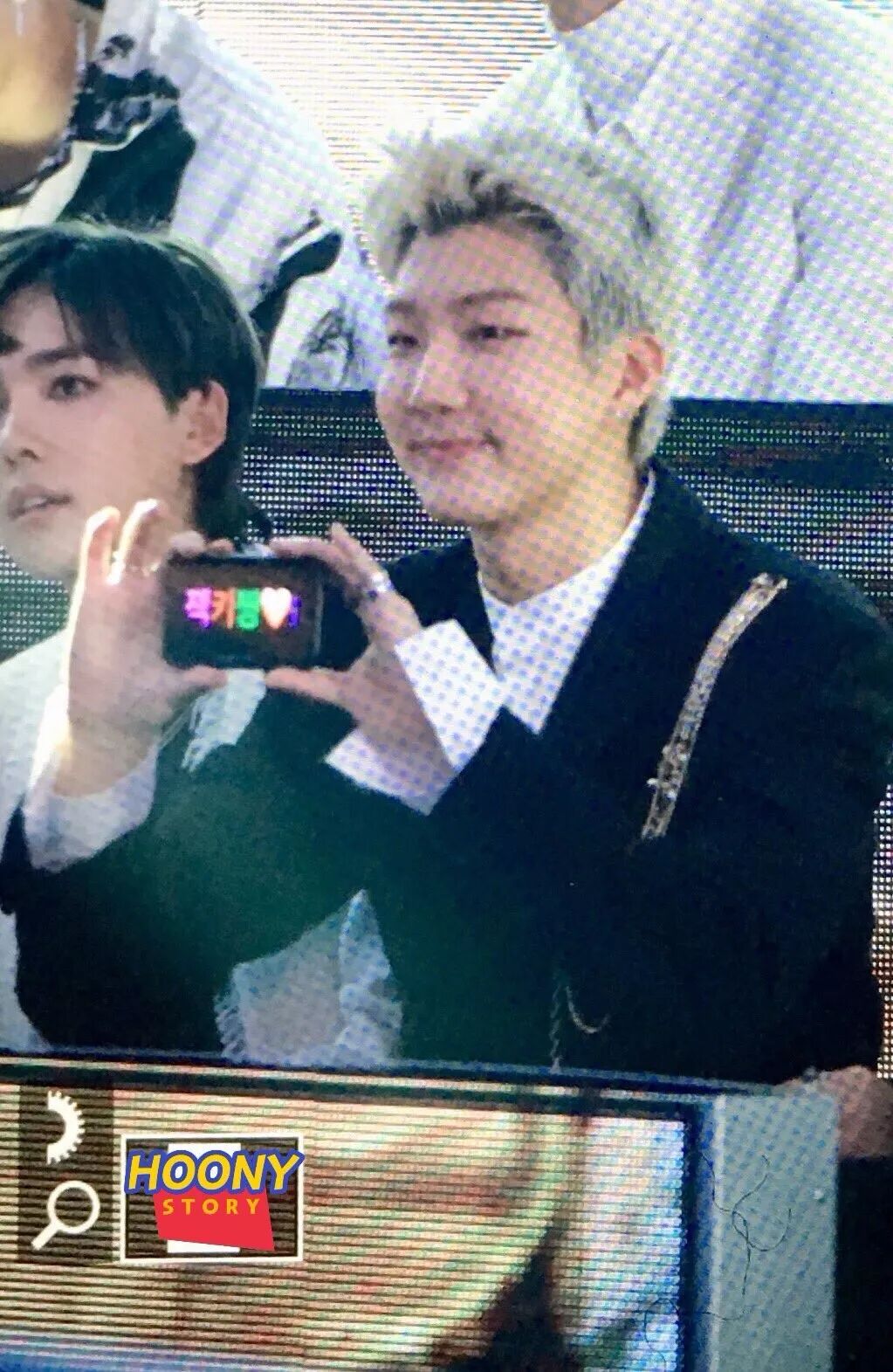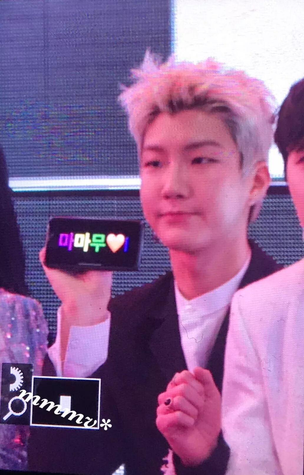 昨晚的《MBC歌谣大祭典》中为其他歌手们应援的WINNER李昇勋,很认真地举着收集为其他歌手们应援,最后一条信息是“下班”。