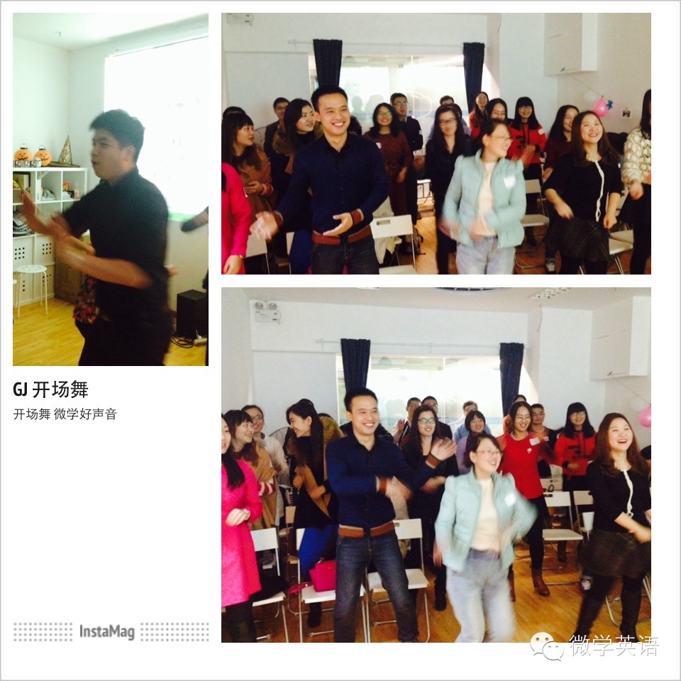 微学英语Co-founder兼男主持GJ 携手女主持Vicky 带大家一起热舞摇摆,舞蹈小达人Jenny 更是一展舞蹈才能,现场气氛一下子活跃起来。接着,主持人Vicky 邀请现场观众和歌手进行了简要的自我介绍,以便熟悉彼此,结交新朋友。