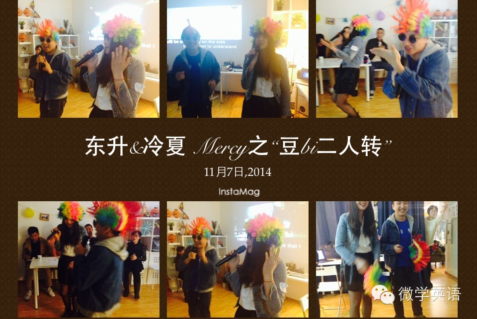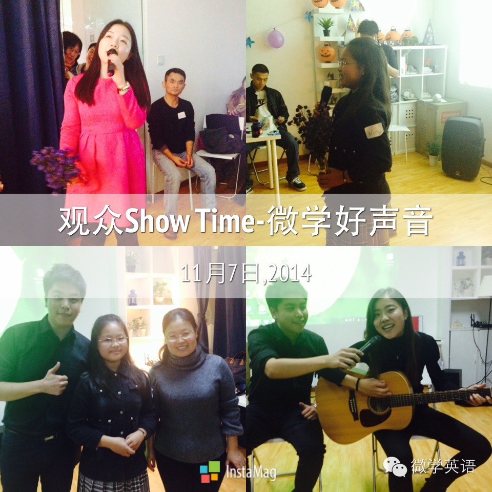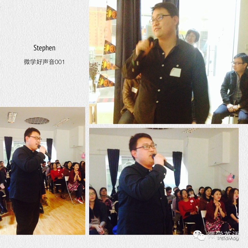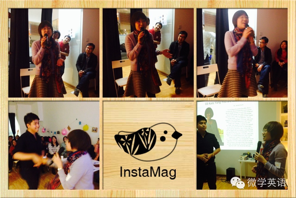 Richard :参加这次好声音的感受就是享受WeEtudyEnglish带来的新鲜气息,just enjoy the show!Stephen :What a fantastic show last night. There are many talented singers. I must dig them if I have positions on singing or music. I'm really honor and excited to achieve the most popular(also the heavist)singer. I'd like to invite other friends to participate in the second round of we sing. I'm looking forward now.Zan :昨晚好开心!高手如云的WSE,最爱“东升&冷夏”的Mercy和小胖妞Nina唱的Katy Perry的歌,还有专业级选手Amy演唱的Let it go。我也收获了挑战自己的快乐 ,感谢亲友团Cecilia 和Cici的支持,观众的掌声,还有Cecilia送的花。(对自己要求不高,开心就好)还有好想去上周日的词汇课,可惜太火爆了!Kate :My first singing show in the stage of WSE,the most lovely community I have ever met.I performed You're Beautiful by James Blunt.People here are so friendly especially cute GJ and handsome Jornathan! In addition,the directors like Erik and Jenny can not be more responsible!I love their wechat texts,very pretty to let me eager to study how to make. That is an unforgettable night for being very lucky to have a good beginning in WSE !Amy :These people are so lovely and I've never taken part in such activity that perfectly combined English learning with singing !I love WeStudyEnglish! Hope to see you next time!东升 :挺惊讶能够拿“最佳歌手 ”当时主要想周末之前让大家轻松,释放自己!所以选择了一首快歌并且设计了调动气氛的装扮和环节。而且最后出其不意的生日蛋糕和祝福 让我自己很惊喜和感动 ,WSE特别用心 !自嗨很关键,看到Amy唱歌很入戏,大家自然能进入状态,从前几组选手中也学习了不少经验!Cici :没参加不知道,参加了才发现原来高手如云呀!开场跳舞的气氛活跃的很好,快乐且轻松 !比赛过程中歌手唱功夫很不错,如果和观众更多互动就很好了,评委之间也可以互动一下!雅妮Nina :微学好声音真的很棒,每个选手都很优秀。虽然下班后花1个半小时匆匆赶过去有点辛苦,但选手们精彩的表现真的让我不虚此行 。 我被Amy在台上自信自如的表现深深吸引和感动,那一刻她就像一个天使一样闪闪发光,带给我们无限的正能量,感染着现场的每个人 。还有可爱的东升和冷夏,俏皮的歌声,幽默的表现将现场气氛带到High爆。冷夏 现场精心准备的生日礼物给了东升 一个大大的惊喜,祝福他俩在微学英语这个有爱的大家庭中更加甜蜜幸福 。彦南Elena :对于我这个中文都五音不全的人来说,听到现场版的英文歌曲真的很震撼。学英语这么久但说实话一首完整的歌都不会,如此近距离的接触到唱的这么棒的选手,真心很喜欢哈 。赞,以后活动要继续呀!魏凡 :挺好玩的,感觉很新鲜,如果要是能有转椅更好了,哈哈!Joyce徐琼 :周五晚上的微学好声音是我第一次真正参加微学英语社区组织的聚会活动,我想说:真的好赞哇有木有!!!作为一名观众,没有参赛也没有担任任何角色,没有压力,我纯粹地享受了这次活动,从中得到的快乐和放松让我整个人开心起来。我感受到了久违的生活的热情和魅力,对大家释放出来的活力满心欢喜,这一段时间以来的压抑一扫而光,重新看到了生命的温暖美好 。我真的很开心,活动之后整个人都精神了。Vicky主持人 :很开心也很荣幸能和GJ一起主持,也谢谢所有人对我的支持和鼓励,能在这样一场音乐盛宴中给大家带来快乐真的是一件非常幸福的事儿。与微学英语的相遇,是我一生最曼妙的姻缘 。因为一次相逢,爱上一群朋友,因为深深热爱,所以选择坚持,在微学英语这个大家庭里锻炼成长,才懂得学习英语的路上,原来从不孤单 !Erik :一个月前跟几个朋友吃饭闲聊时的一个想法,没想到一个月以后真的变成了现实!虽然离10月7日第一期“微学好声音”已经过去了几天,但此时此刻我仍想发自内心地说一句“We made it ”!每一个喜欢“微学好声音”的人都有一个属于自己的音乐故事 。 我从小就一直很喜欢唱歌,特别是英文歌。记得刚来北京那一年Mariah Carey的We Belong together红遍全球,我每次去KTV刷夜都必点这首歌,但周围人的反应不是去洗手间就聊天发短信。虽然反响平平,但是自嗨的目标绝对是200%达到啦!我坚信一定能够找到同样喜欢唱英文歌的朋友,所以我一直坚持着这个信念,直到遇见了WeStudyEnglish微学英语,这里有一群真正热爱音乐学习同时又热爱英文歌,而且更重要的是“懂得如何欣赏英文歌 ”的小伙伴!"给喜欢唱英文歌的小伙伴一个展示自己的舞台,同时通过英文歌的练习来增加对英语学习的热情,也让更多的小伙伴关注英文歌喜欢英文歌 "!带着这样的初衷,“微学好声音”在期盼之中降生啦!让人更加激动的是第一期“微学好声音”的活动海报发布出去不到两天,就收到了10位选手的报名,让我对这个活动愈发充满期待!经过我们几位小伙伴的策划和准备,第一期活动顺利结束!很多小伙伴问“下一期是啥时候? ”让我们有了更大的动力和信心去继续做好微学好声音这项公益活动 !我们社区公益活动 的宗旨就是致力于服务所有热爱英语,同时坚信“英语可以通过自学提高 ”的小伙伴们!“微学好声音”旨在通过英文歌的练习,激发和提升大家学习英语的热情!如果你也对微学英语社区的公益活动 感兴趣,就一起加入我们吧!If your life were a song and you were the singer, how would you want the music to go?