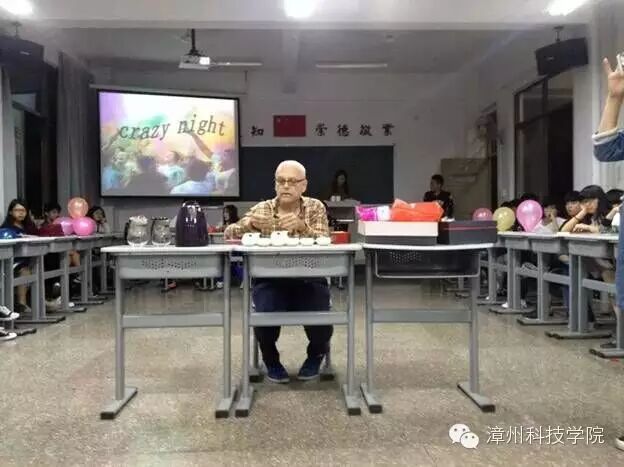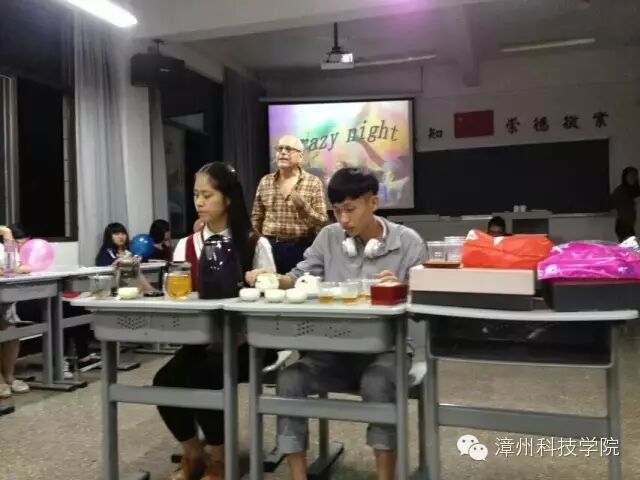 我校英语社在电教214开展与Steven老师中英文交流会crazy night。Steven老师应邀出席及英语社其他成员参加了此次交流会。热烈欢迎2015级新生加入English stream这个大家庭。晚上9时,交流会正式开始。Steven老师用一种别开生面的方式让社员自我介绍,博得了大家的当堂喝彩。接下来Steven老师先介绍了泡茶艺术及中西文化差异。他教我们如何泡好茶如何品茶,讲述了中国各地的美食,以及自己是如何学中文并鼓励我们要学好英语,Steven老师的发言幽默风趣,时不时逗大家笑,令现场的气氛达到了沸点,现场演唱一首英文歌Delta dawn 嗨爆全场。组织部何子涵同学幽默的自我介绍博得大家的阵阵喝彩,将整个见面会引入高潮。在活动的结尾还有子涵同学的bad boy歌曲助兴。