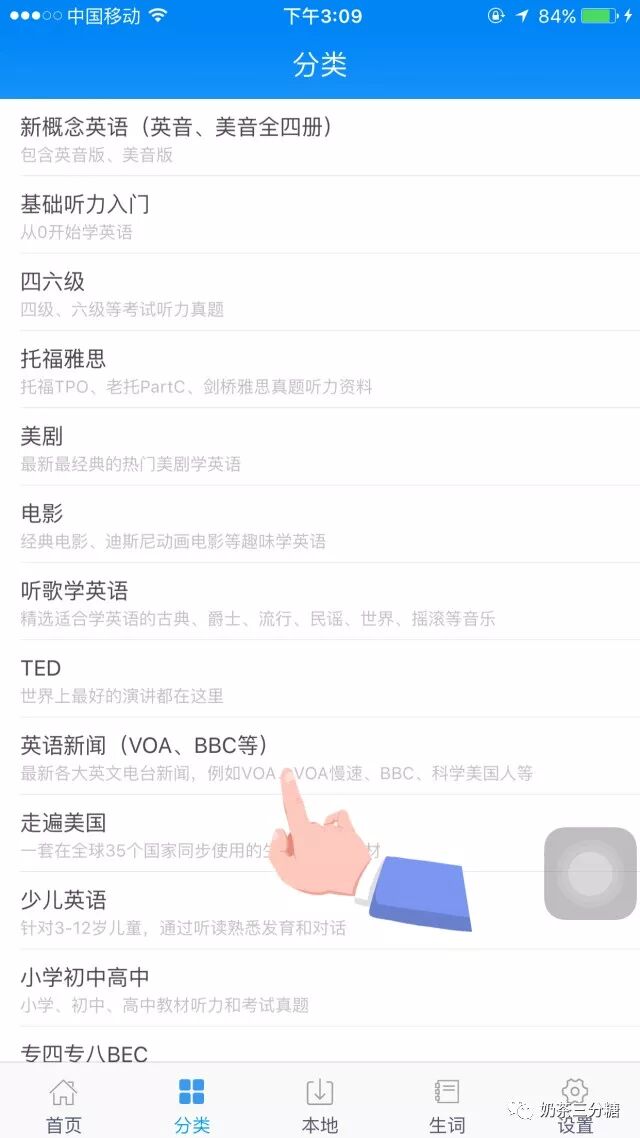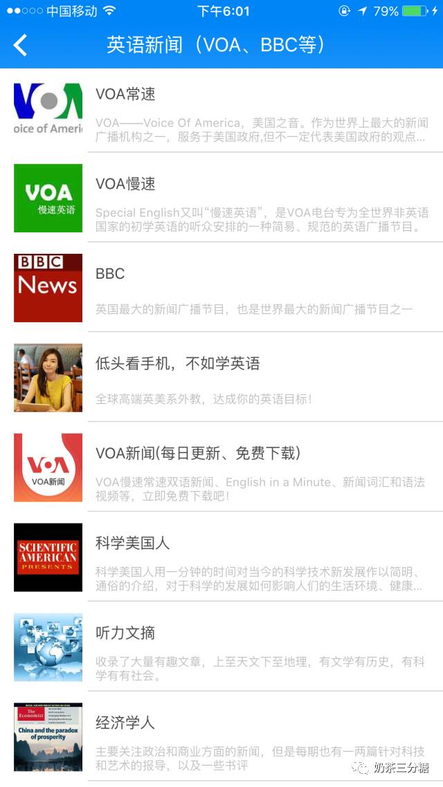 听长对话的时候不要只听一篇对话,我一般都是选一个话题,大概有三四个对话,听的时候听一句默一句,不确定的单词或者句子画上标记,听完整个话题的内容之后对比一下原句,看看自己哪些地方出了差错,听短文和新闻也是同样的操作,刚开始的时候我会选择听短文多一点,慢慢练习可以开始尝试voa的常速新闻试一试,总之大家根据自己的喜好来吧,软件上还是有很多类别的。