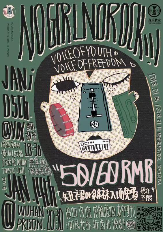 在男性乐手一手遮天的摇滚圈,“No girl,No Rock”的主题演出。这绝不是一场以物化女性为噱头的无聊演出,我们集结了武汉地下音乐圈最有趣的女子力量,将为大家呈现两场奇妙的女乐手专题演出!