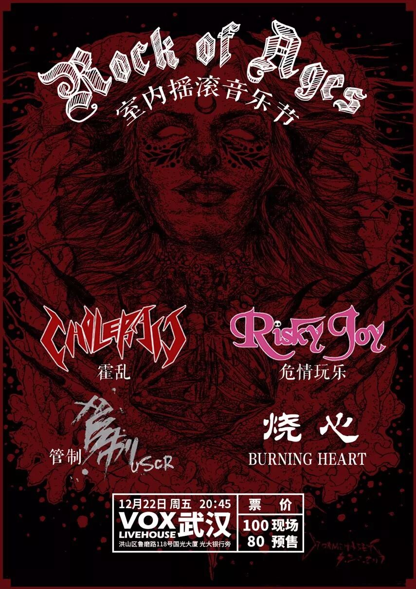 终于是时候放下整整一年的重负,同过去的自己和生活告别,别再踌躇、纠结于过去的种种,在2017年终之际,我们有理由相信,有音乐的陪伴,你将无所畏惧,你也将无所不能。那么这样的机会来了,此次4支具代表性的武汉本地乐队强力出击,联合呈现,横跨老中青几代,续写摇滚年代的辉煌,我们将用事实证明,现场才是摇滚乐队存在的最重要意义所在。摇滚年代,传奇继续!Rockof Ages,Keepon Rocking!
