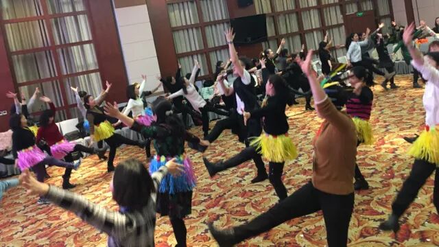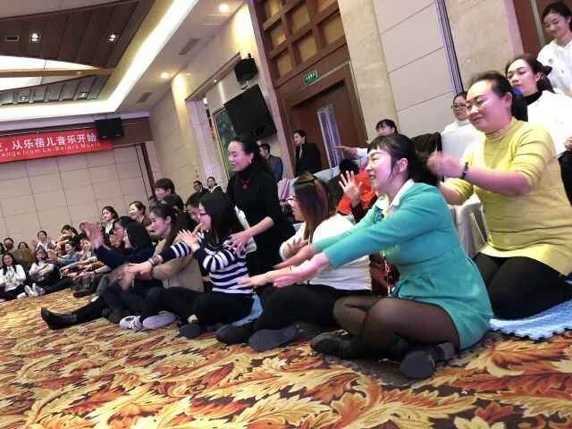 在王子老师极富感染力和带动性的课程中,老师们感受到了纯正奥尔夫音乐带给大家的愉快体验,沉醉在了乐蓓儿独特的音乐教法之中,课堂中,每一位老师都全情投入,跟随王子老师的带领,在玩乐中投入地学习。跳跃的鼓点,悠扬的音调琴声,热烈的舞蹈,将现场气氛推向高潮,让每一位老师都感受着奥尔夫音乐的巨大魔力。