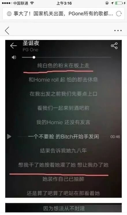 近日,李小璐与当红嘻哈歌手PGOne的“夜宿门”时间成为网络关注热点,而另一边,当事人之一的PGOne还受到了事件之外的关注——新华网、紫光阁等多个中字头媒体先后点名PGOne歌词低俗,中央更在微博直接发布“警惕提示”,指出PGOne的歌曲《圣诞夜》侮辱妇女,更有教唆青少年吸毒的恶劣影响。