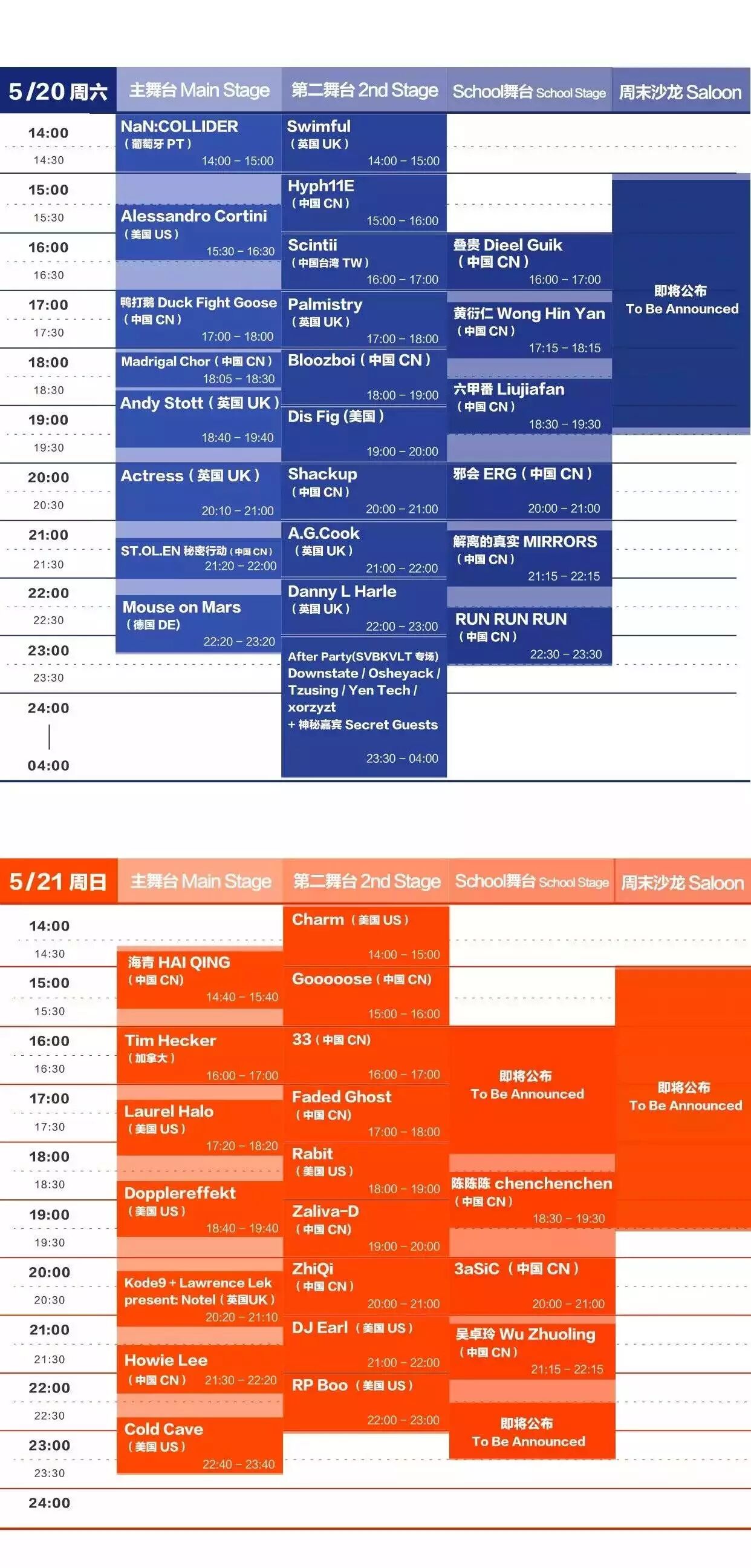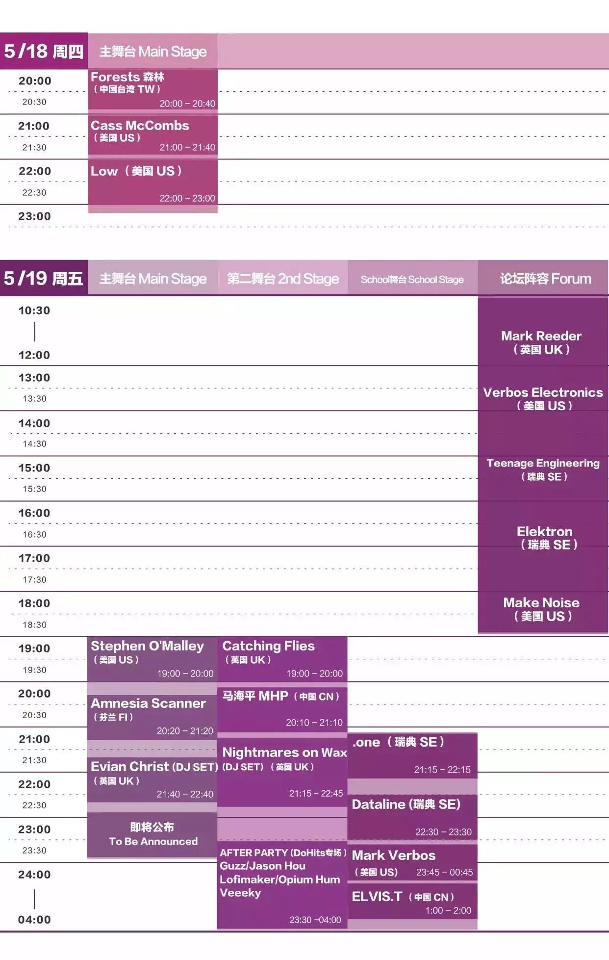 连续4天带来最新潮的音乐体验,横跨跳舞音乐、先锋电子、独立摇滚、民谣等多种风格,汇集了当下全球最具开创精神的音乐人。而舞台设计将最前沿的新媒体艺术融入其中,呈现出极具科幻美感的舞台效果。同时围绕音乐周将开展系列文化、科技及设计论坛。