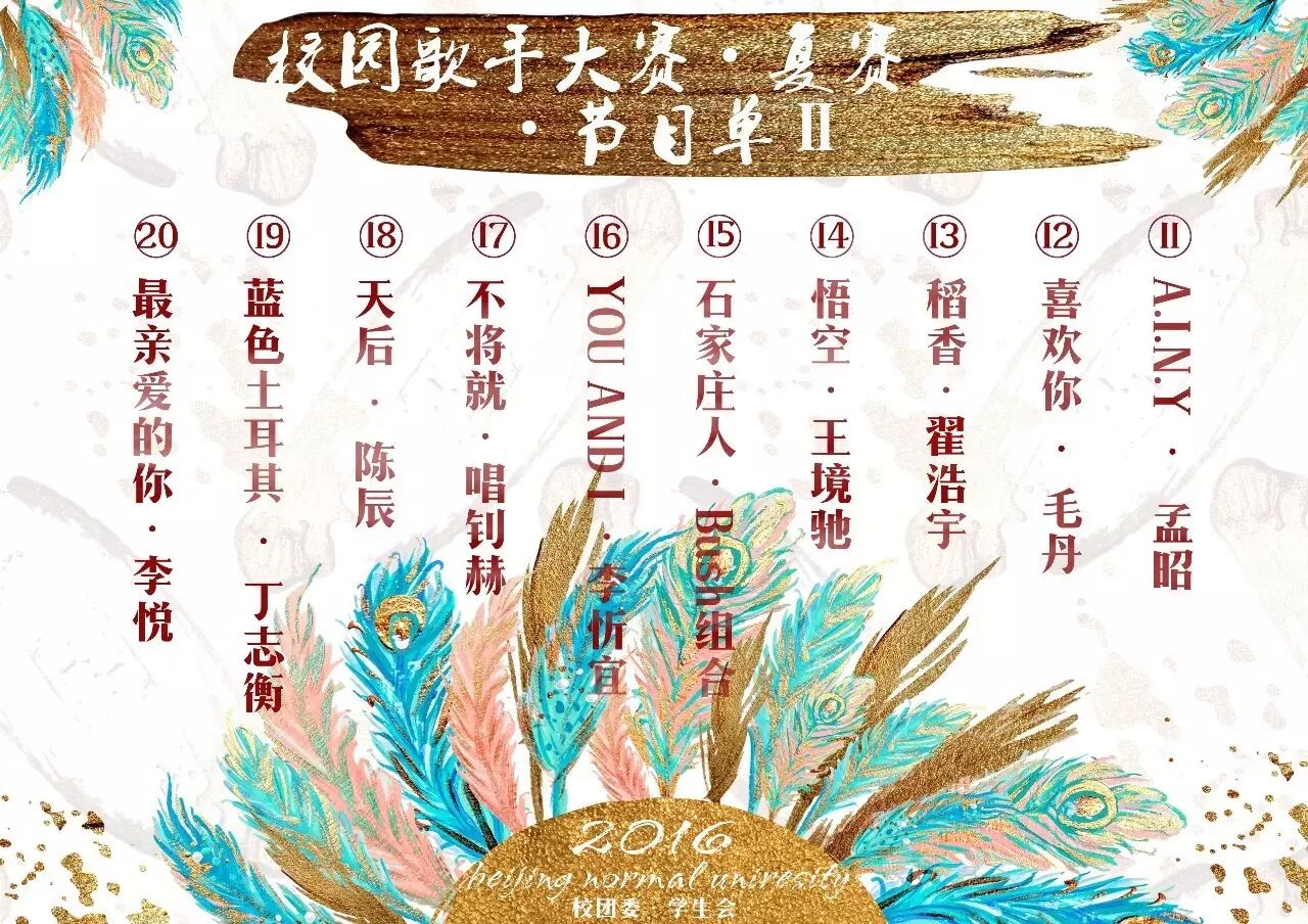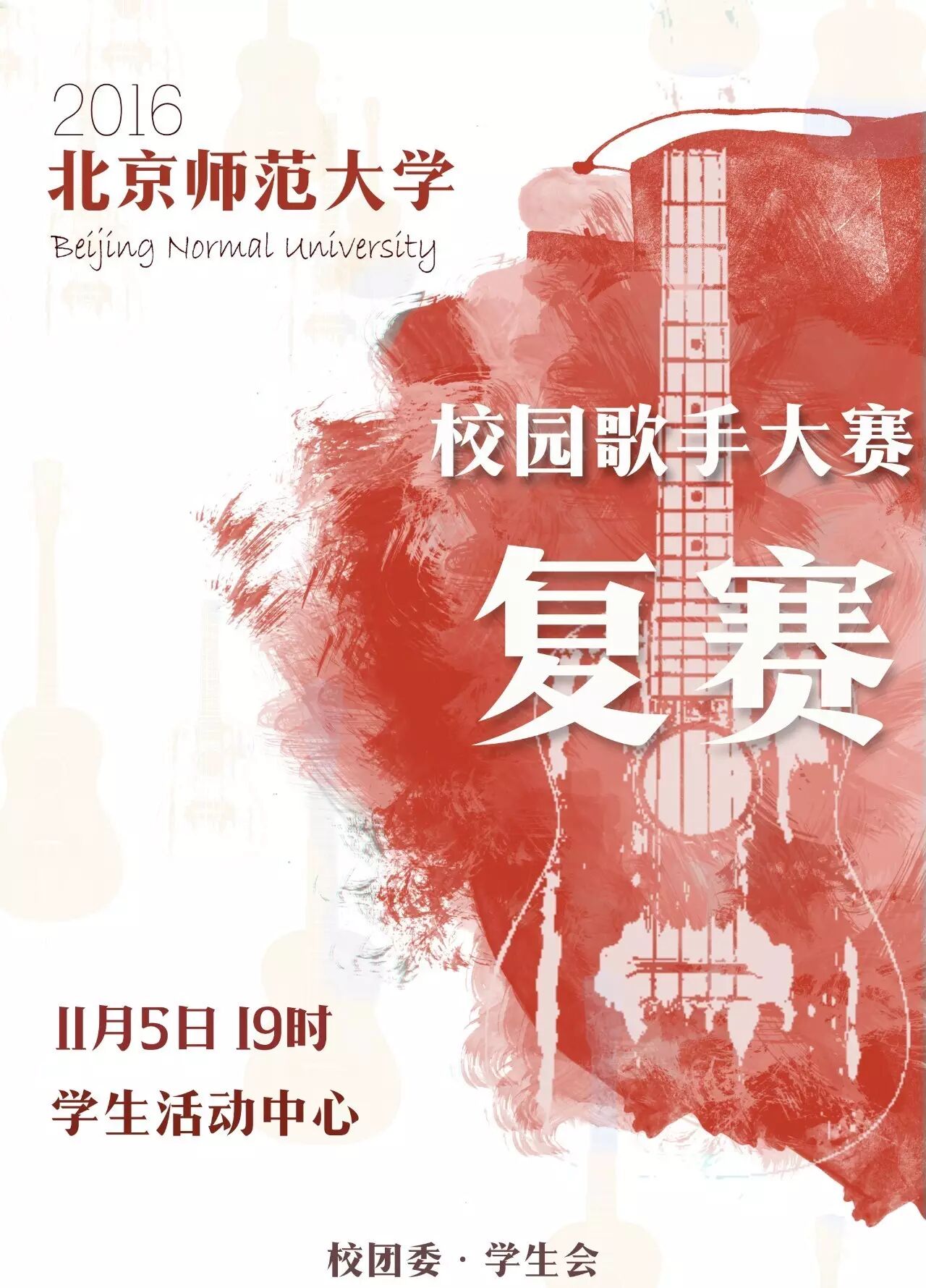 11月2日(周三)和11月3日(周四)晚20:00起在北京师范大学学生会微信平台(微信号:bsdxsh)留言“校歌赛+姓名+学号+联系方式”抢票。每天前【50】位同学将获得2016校园歌手大赛复赛入场券一张。