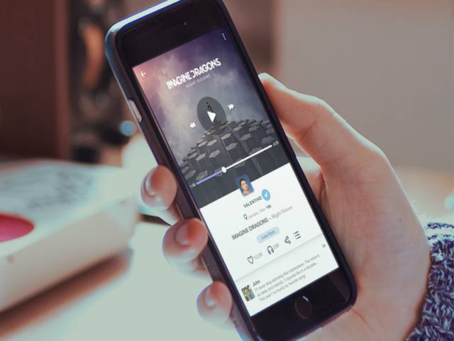 通常相关操作的按钮会置于屏幕的下半部分,甚至贴近底部,音乐专辑封面常常会置于界面上方。这个界面其实也是展示设计师创意的地方。