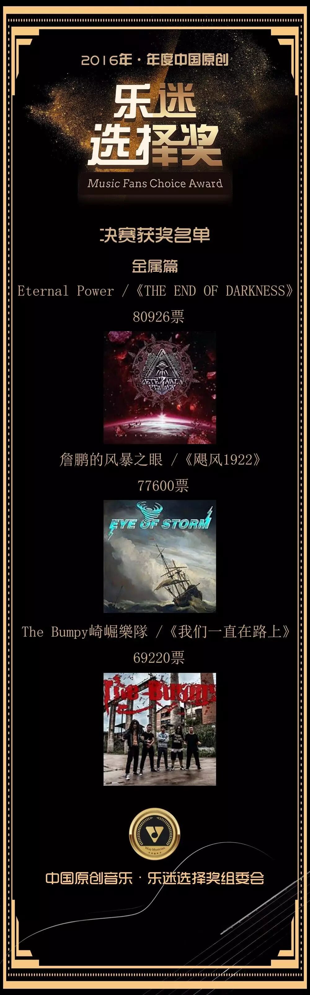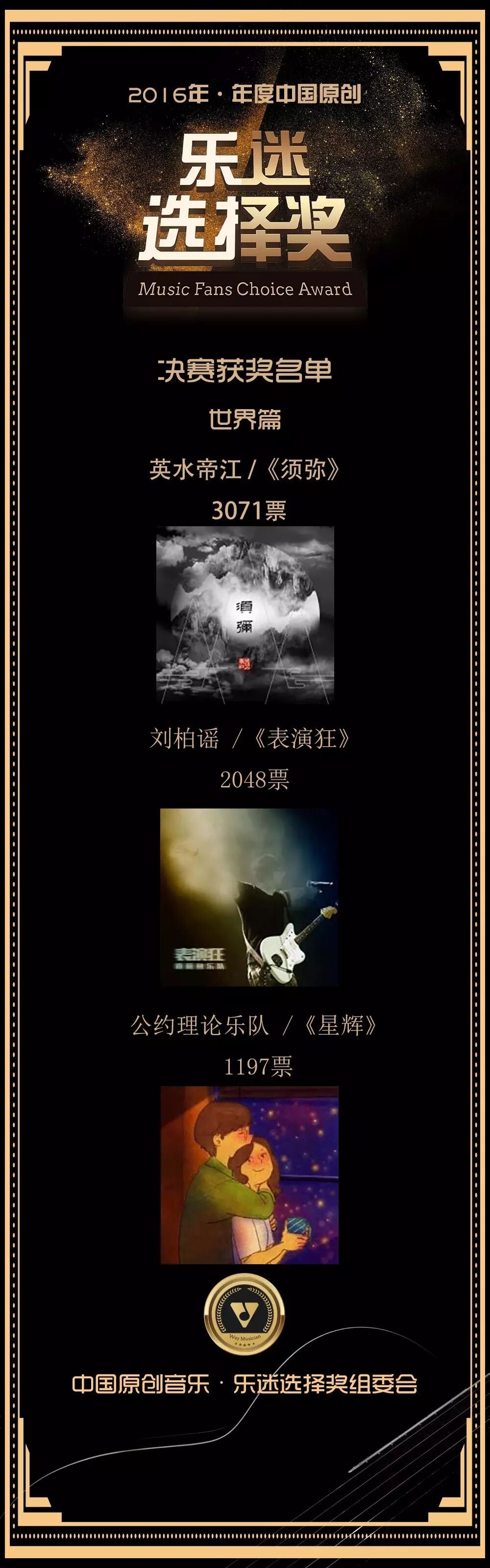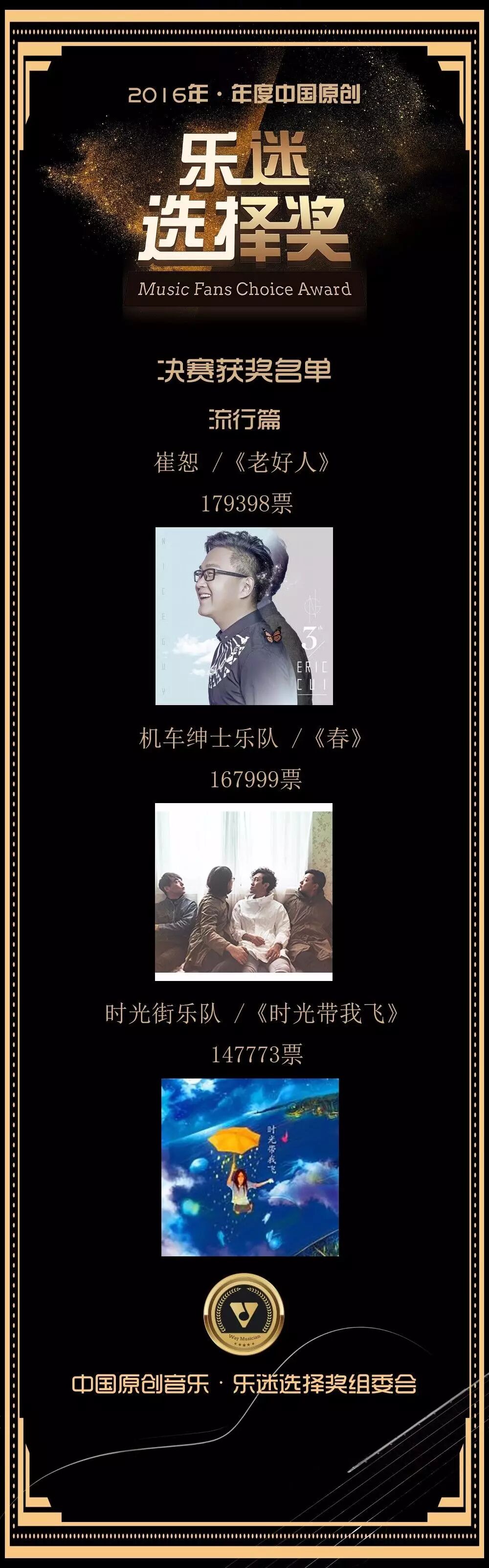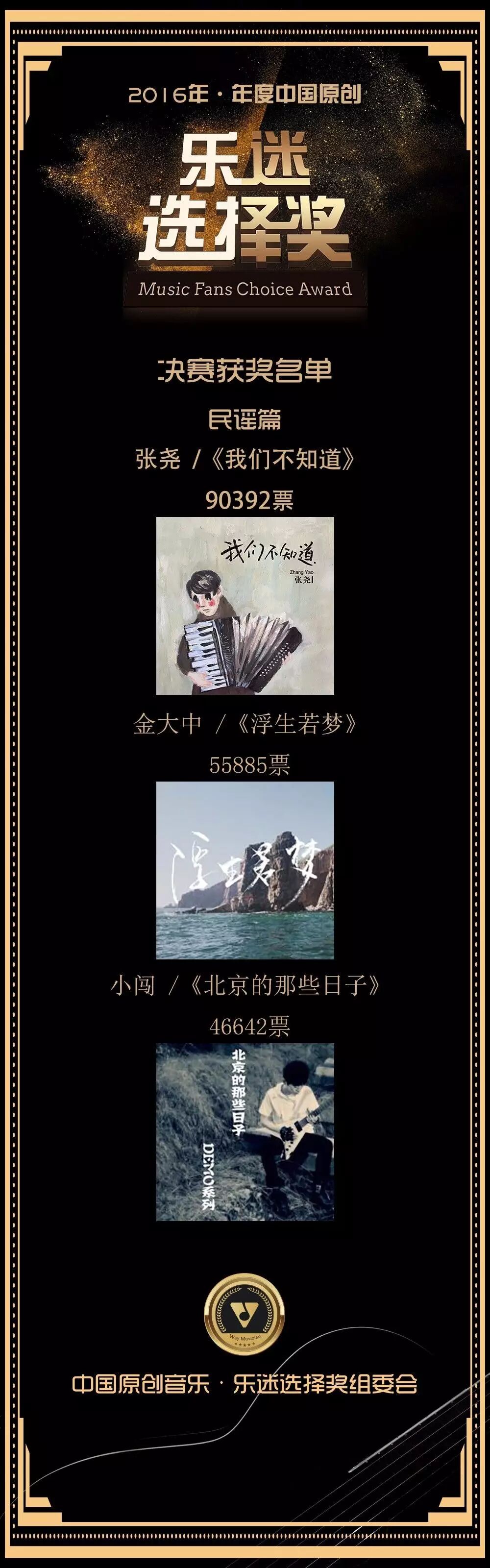 接下来,《2016年度中国原创音乐 · 乐迷选择奖》颁奖典礼将会在北京举行,届时会邀请众多业内人士和获奖音乐人 / 乐队来参加这场音乐盛会,敬请期待!