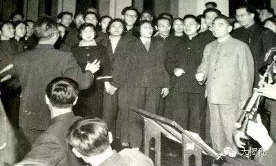1964年,《歌唱祖国》被大型音乐舞蹈史诗《东方红》选中,作为压轴歌曲,有一次演员们在排练的时候,来排练场看望大家,并和大家一起唱《歌唱祖国》,这就是当时和大家一起唱歌时留下的珍贵照片。 1965年,音乐舞蹈史诗《东方红》在全国上映,《歌唱祖国》作为压轴歌曲,将这部音乐史诗所要表达的情感,更加的推向了一个高潮!