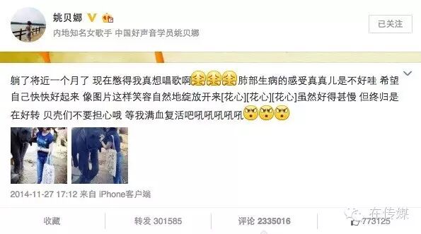 姚贝娜的微博,已经有一年多没有更新,然而爱她的粉丝们已经将给她留言、评论变成了习惯,现在她的最后一条微博的评论已经超过232万,里面都是大家对她的怀念和祝福。