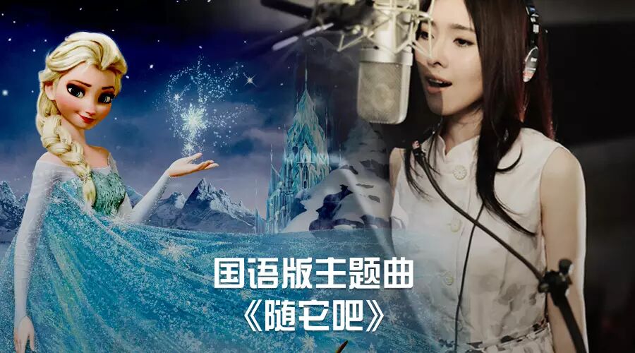 与影片一样备受瞩目的还有《冰雪奇缘》电影原声音乐,这张电影原声带与主题曲《Let It Go》都下载量惊人;《冰雪奇缘》原声大碟更在北美击败碧昂斯最新专辑,连续两周登顶Billboard公告牌排行榜冠军席位!这股冰雪魅力在2014年春节跨海延烧至中国之时,美国迪士尼公司对于主题曲的中文配唱者进行了多轮严格挑选,并最终选择姚贝娜和胡维纳作为影片主题曲《随它吧》的大陆流行曲版本和剧场版本的中文演唱者。这首歌在本片中文版的插曲和片尾字幕唱响,配合着美轮美奂的动画,为观众带来视听双享受。