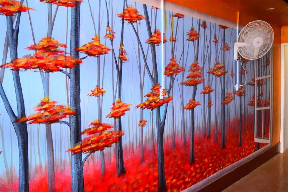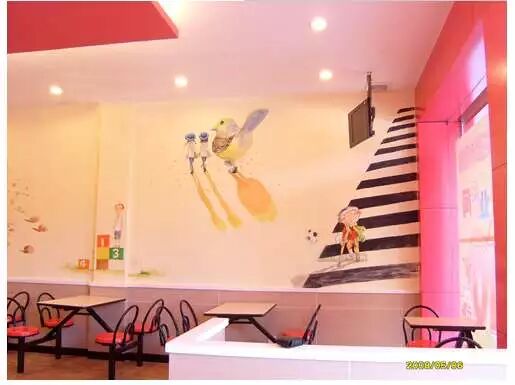 同时承接酒店,KTV,幼儿园,游乐场等壁画油画工程。与传统的墙纸墙布不同,这是专业资深油画大师,用新型的环保调水丙烯颜料,直接在墙上画画!