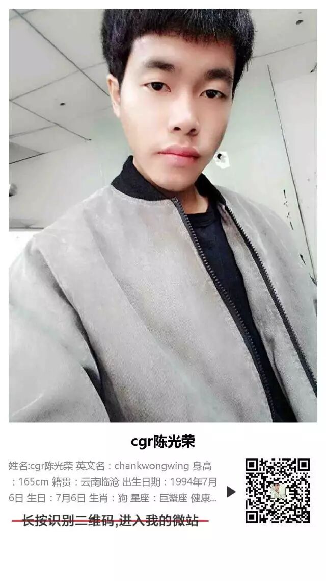 cgr陈光荣 英文名chankwongwing,1994年出生,音乐制作人,词曲创作人,歌手。擅长钢琴,吉他,贝斯,架子鼓,手风琴,立志当一名会跳舞会唱歌的科学家,坚持自己的音乐创作,勇于挑战自我。