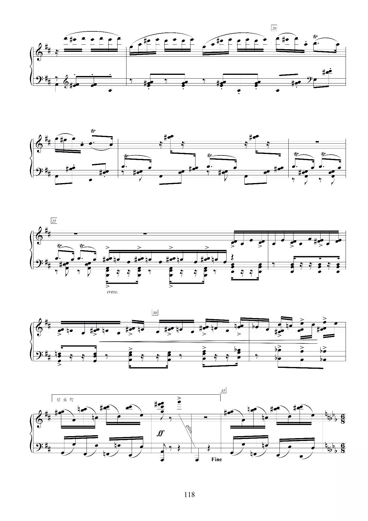 乐曲将原来的乐段结构扩展为单三部结构,在保留原曲基调情况下,对旋律进行了钢琴化的再创作。中段采取较强的曲调对比写法,并强化运用大跳动音程、小二度和声音响等较为现代作曲技法,刻划出风趣、幽默、栩栩如生的人物形象。在钢琴上演绎四胡琴韵并努力使之国际化,是曲作者的一次尝试。
