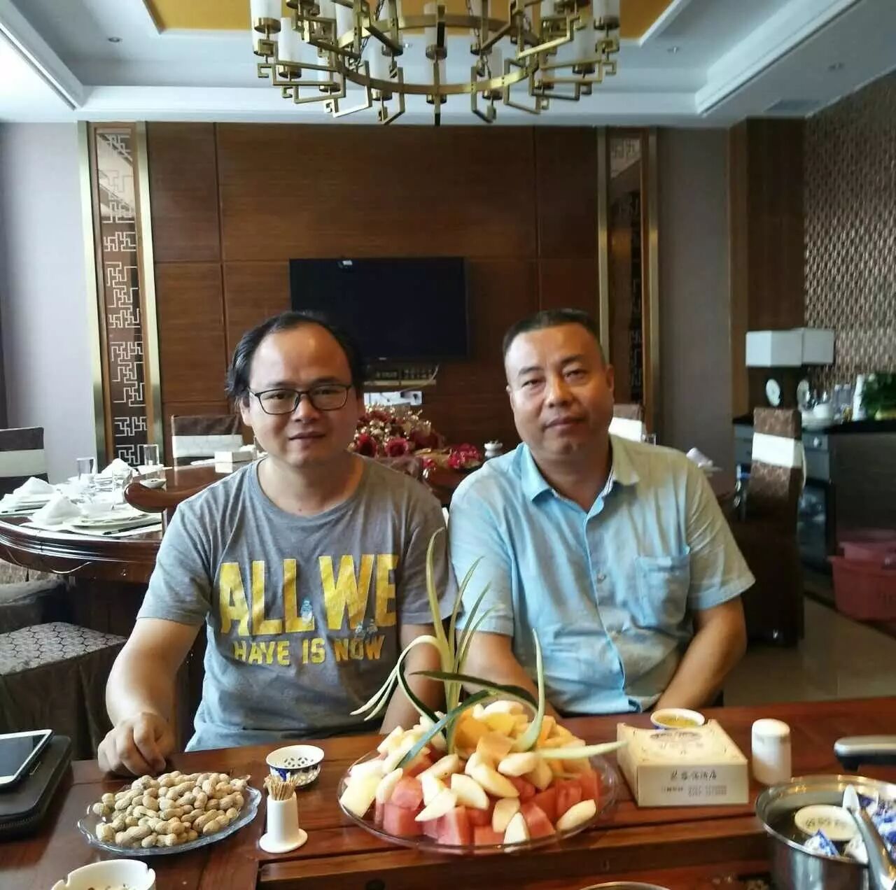 歌曲作者(右)与本歌制作人音乐家舒一夫(左)