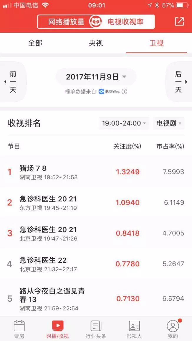11月9日播出的《猎场》第7、8集,更是达到了7.5993%的市场占有率。但是也有网友质疑服化道、后期制作过时,剧情狗血拖沓,甚至认为胡歌的演技套路化。