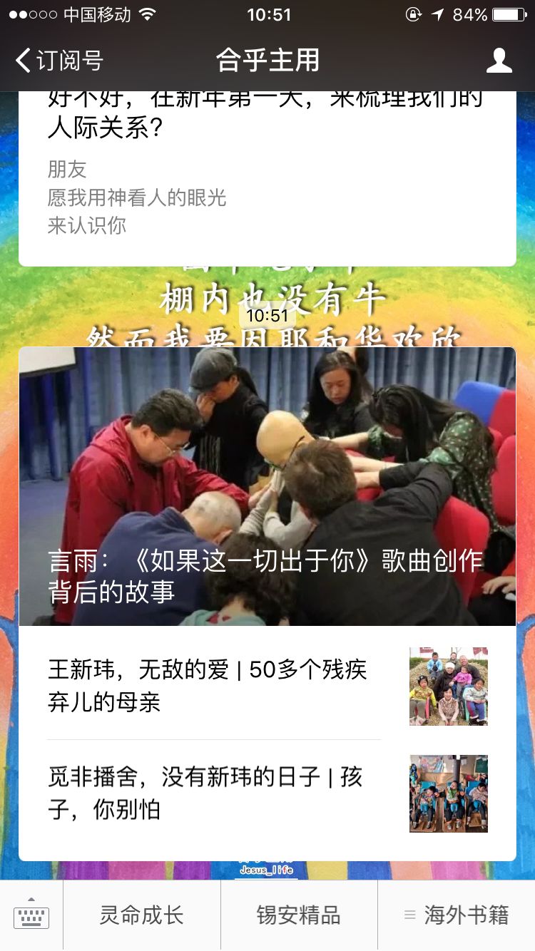 之后我在天津停留,在一位姊妹家住了几天,写出了《如果这一切出于你》这首歌的歌词。然后去北京参加海外校园作者见面会,认识《无花果听歌》公众号的主编阿浅弟兄,他把我这首歌推荐给了徐丽姊妹。之后徐丽姊妹谱了曲,呼召众主内歌手一起来唱。最终由7g制作成微视频公开播放。