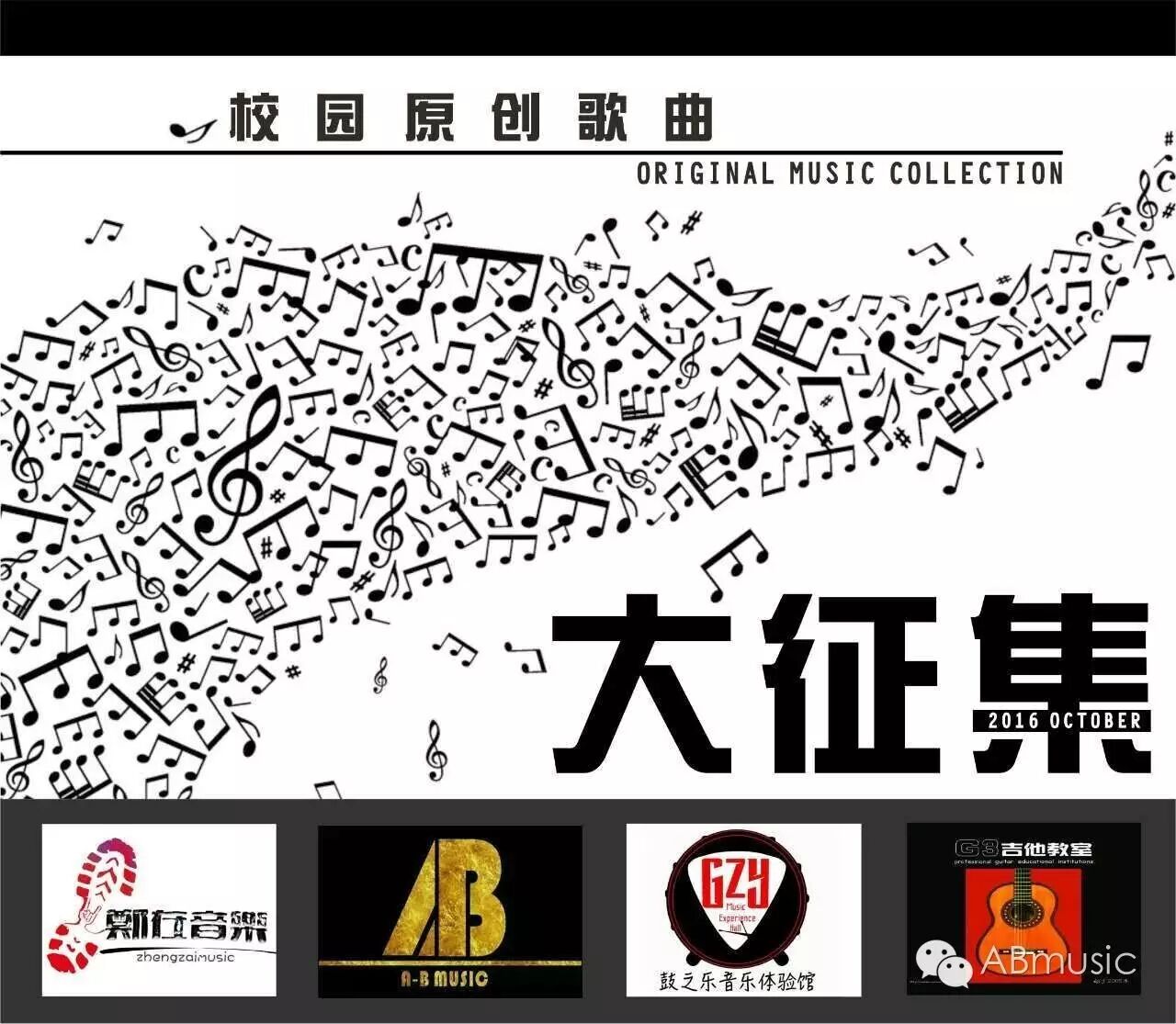 ABmusic工作室联合郑在音乐,G3吉他教室,鼓之乐音乐体验馆。共同发起“校园原创征集令”。