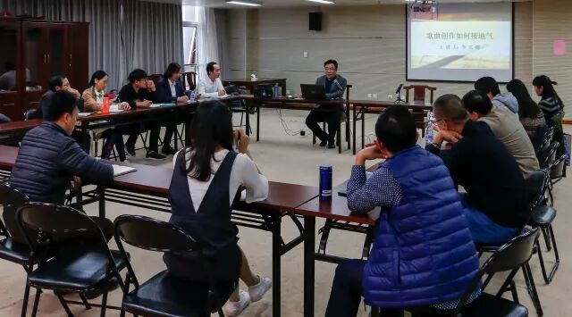 讲座中,李式耀也结合自己的作曲经验和获奖作品进行举例,分享他对歌曲创作如何接地气的建议。他说:“歌曲创作要接地气,应该要有精准定位,把握时代脉搏。对于所表现的对象要有所了解,百姓喜欢什么必须知道,进行调查和研究,建立情感链接,精准定位,才能写出好作品来。然后,充分调动创作手法丰富音乐作品,调动一切手段来丰富和提升作品。”